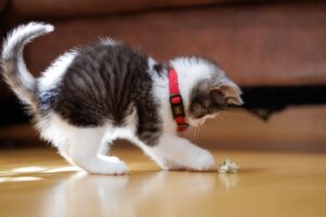 運動量が減ると関節トラブルや肥満の原因に。レーザーポインターや知育玩具などで毎日10〜15分の遊びを習慣化すると良いでしょう。