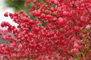 ニシキギは秋になると真っ赤に染まる低木で、その名の通り「錦織りなす」美しさがあります。枝にあるコルク質の翼もユニークで、冬の景観にも独特の趣を添えます。