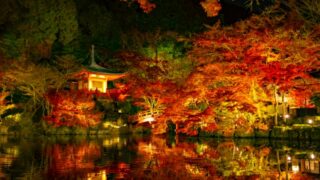 昼の紅葉も素敵ですが、夜のライトアップは別格。光に照らされた紅葉が闇の中に浮かび上がり、まるで絵巻物のような美しさです。