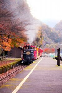 紅葉のトンネル!嵐山トロッコ列車で感動の瞬間を