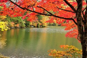 湖畔に広がるモミジやカエデは、湖の青とのコントラストが見事。遊覧船に乗れば、水上から紅葉を一望できる贅沢な体験も可能です。カメラを片手に湖畔を歩くだけでも癒されます。
