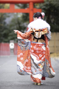 着物で初詣に行く女性も多く見られます。派手すぎず、落ち着いた柄の小紋や訪問着が適しています。足元は草履に足袋を合わせ、冷え対策として足袋カバーを用意すると安心です。防寒用のショールや羽織も忘れずに。